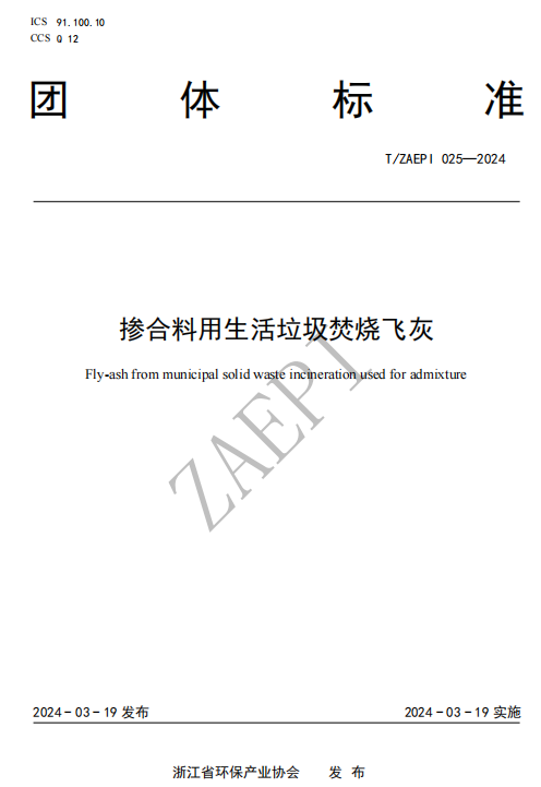 《摻合料用生活垃圾焚燒飛灰》標(biāo)準(zhǔn)號(hào)T/ZAEPI 025-2024,該標(biāo)準(zhǔn)由浙江京蘭環(huán)??萍加邢薰竞驼憬髮W(xué)主編,由浙江省環(huán)保產(chǎn)業(yè)協(xié)會(huì)于2024年3月19日批準(zhǔn)發(fā)布,2024年3月19日起實(shí)施。文件規(guī)定了摻合料用生活垃圾焚燒飛灰的術(shù)語和定義、技術(shù)要求、試驗(yàn)方法、檢驗(yàn)規(guī)則、包裝、標(biāo)志、運(yùn)輸和貯存。文件適用于低溫?zé)岱纸饧八唇舛竟に囂幚砗蠓?HJ 1134規(guī)定的摻合料用生活垃圾焚燒飛灰,為后續(xù)飛灰處理產(chǎn)物的產(chǎn)品化進(jìn)一步拓寬了應(yīng)用場(chǎng)景。